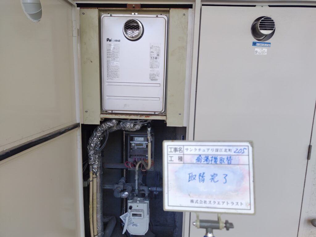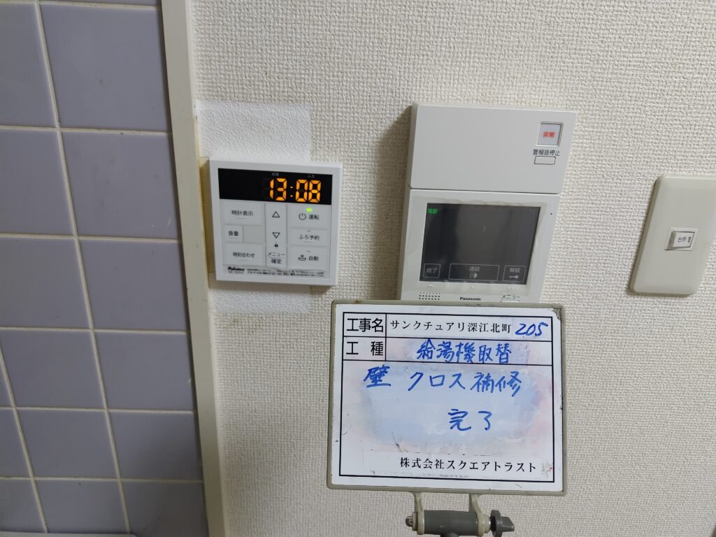 内容は給湯器機器、ガス工事、各リモコン取替、浴槽アダプタの取替です。