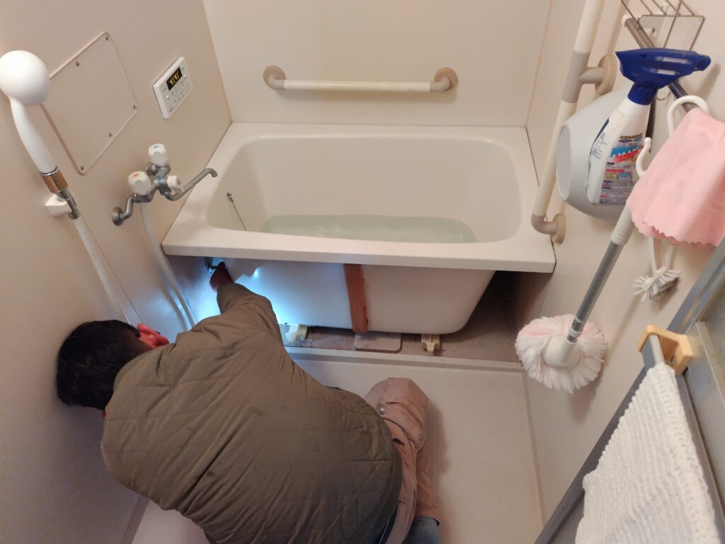 パロマ製の後継機種に見積を変更して浴槽のエプロンを外し循環アダプタを