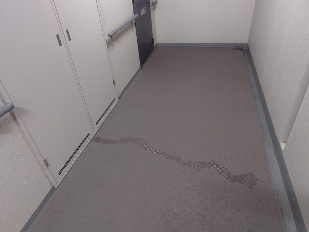 定期点検で見回りしていると廊下に水が滴り流れています。
